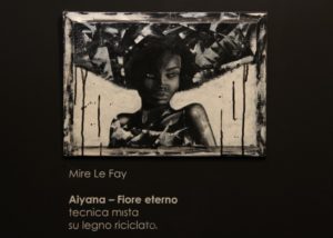 Il primo premio è stato vinto da Mire Le Fay con l’opera Aiyana Fiore Eterno, che ha ottenuto il maggior numero di votazioni tra Facebook e le cartoline dei visitatori. L’artista ha vinto un viaggio per due persone in una capitale europea.