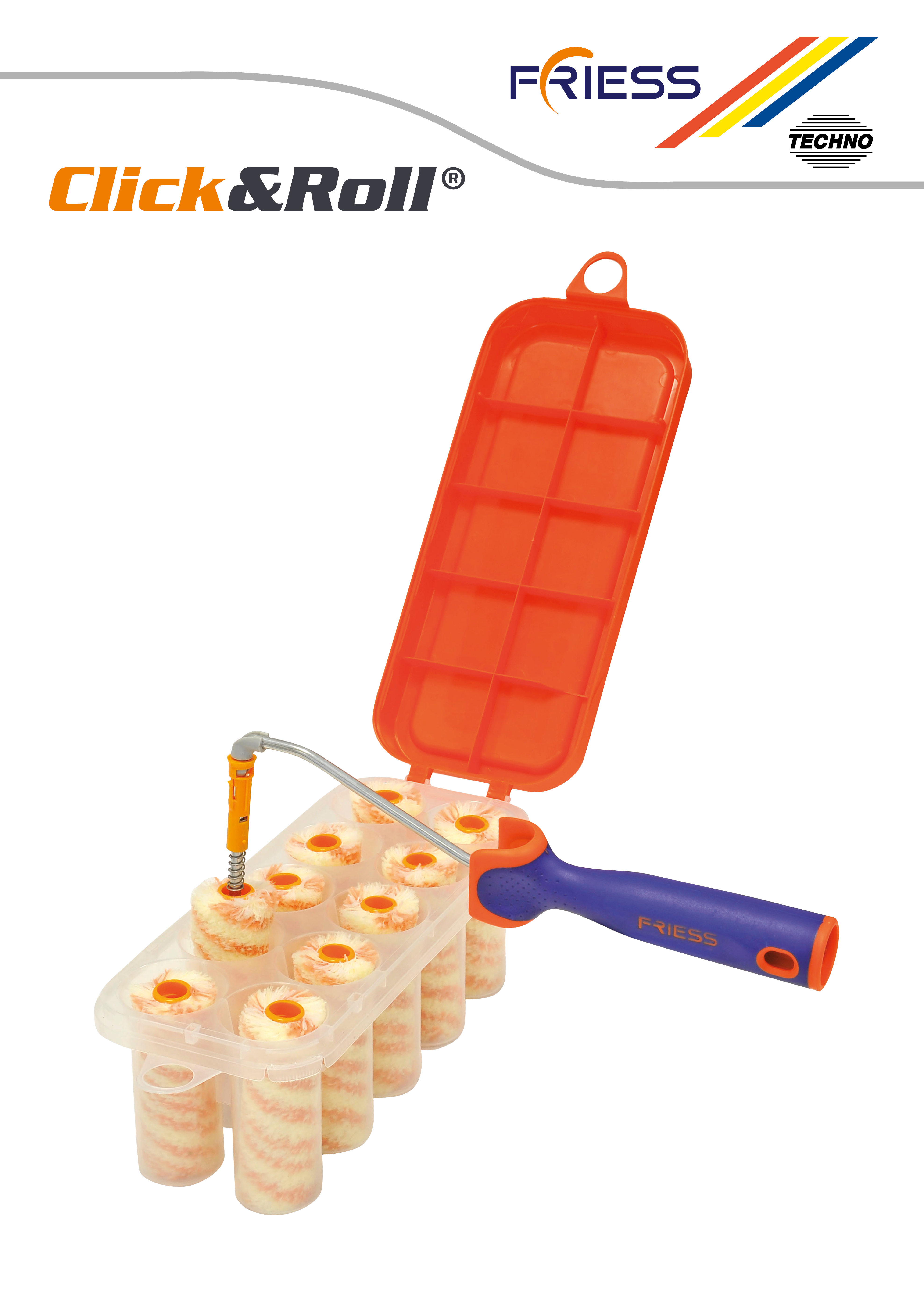 Click&Roll®, inventato e brevettato da Nespoli Group, è un sistema di rilascio automatico del rullo dal manico. Permette di cambiare un rullo facilmente e velocemente senza sporcarsi le mani. I rulli Click&Roll® comprendono un contenitore per conservare il rullo, mantenerlo umido e pronto all’uso per almeno 3 settimane (in base alla tipologia di pittura utilizzata). Con un semplice click, si può sganciare il rullo sporco di pittura nel box. Non serve più mettere il rullo usato in un sacchetto di plastica o lavarlo alla sera dopo l’utilizzo.