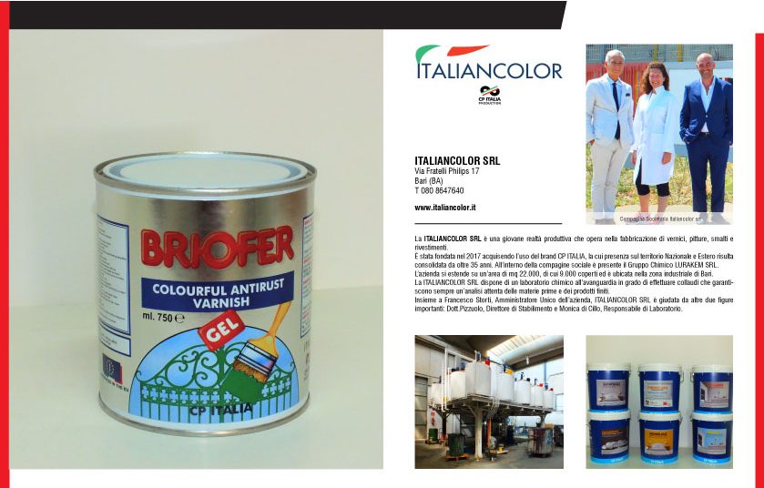 Al fine di garantire la qualità del prodotto e lo sviluppo di prodotti innovativi, la ITALIANCOLOR SRL, ha acquisito alcune delle figure professionali più rappresentative della ex Cp Italia.