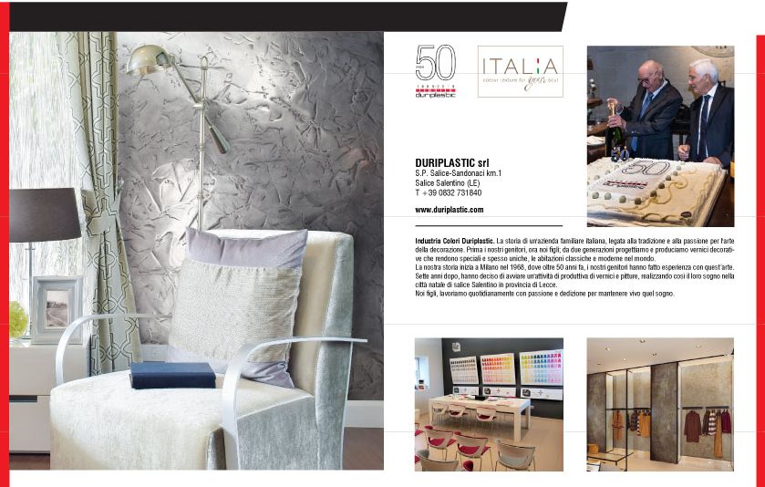 Industria Colori Duriplastic. La storia di un’azienda familiare italiana, legata alla tradizione e alla passione per l’arte della decorazione. Prima i nostri genitori, ora noi figli; da due generazioni progettiamo e produciamo vernici decorative che rendono speciali e spesso uniche, le abitazioni classiche e moderne nel mondo.