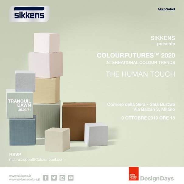 Ogni anno un team internazionale di esperti del colore, designer e architetti analizza i trend socioeconomici emergenti a livello mondiale e le conseguenti esigenze cromatiche, fornendo uno strumento utile a coloro che operano nell’ ambito della progettazione d’interni: COLOUR FUTURES. Sikkens parteciperà ai Brera Design Days per presentare il Colore dell’Anno 2020 e le nuove tendenze cromatiche per il design e l’architettura.