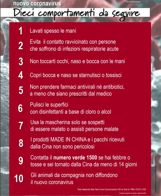 Seguendo queste norme è chiaro che il buon senso, che dovrebbe sempre prevalere, ci impone almeno fino al rientro dell’emergenza di sospendere tutte quelle attività che richiedono l’aggregazione di numerose persone, sia in luoghi pubblici che privati. In questo caso si valuti la sospensione di corsi di formazione, attività dimostrative, presentazioni e sessioni sia culturali che divulgative.