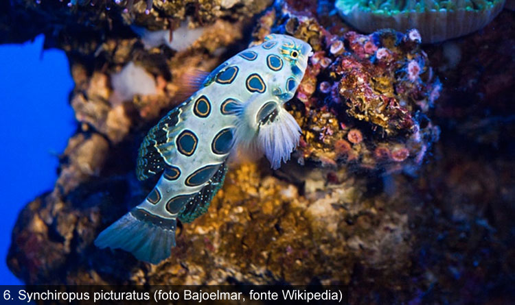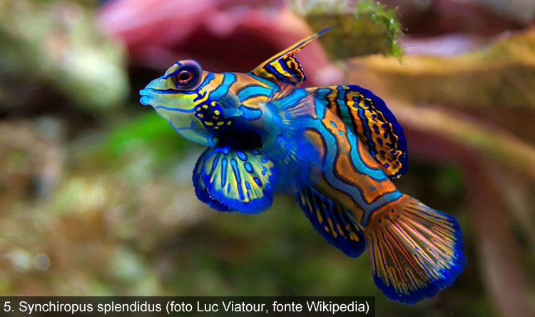 In realtà esistono alcune eccezioni a questa regola. Nel 1995 uno studio pubblicato su Zoological Science, ha scoperto che esistono 2 specie di vertebrati (finora) che possiedono cromatofori contenenti un pigmento veramente blu. Si tratta di due piccoli pesci dello stesso genere molto amati dagli acquariofili, detti pesci mandarino (Figure 5 e 6).