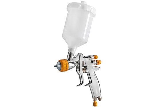 L’aerografo HVLP PRO a serbatoio superiore con regolatore aria permette l’applicazione a spruzzo con sistema HVLP con turbina TMR di diverse coperture, vernici a base acqua o solvente, su differenti supporti (metallo, legno, laminati, pietra…) in diversi settori sia industriali che decorativi come falegnameria, carpenteria, carrozzeria e cura dell’auto, nautica…