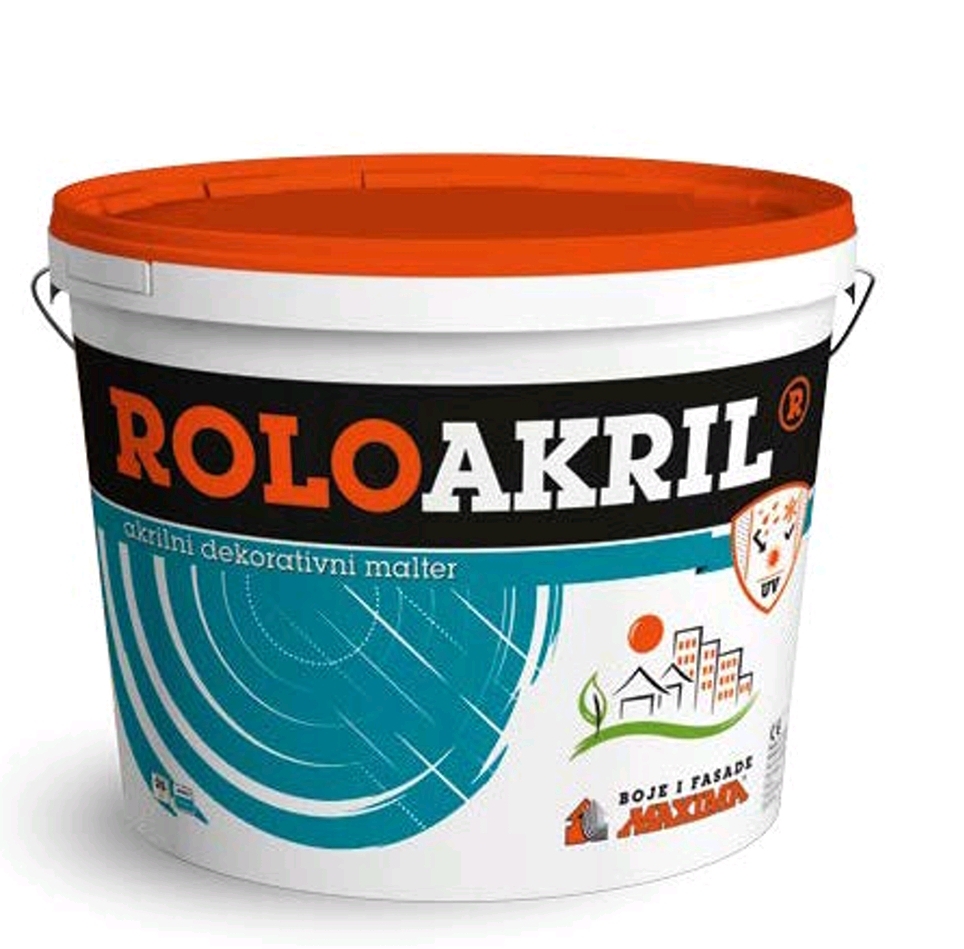 ROLOAKRIL è l’intonaco decorativo di ottima qualità, a base di acrilati. È molto duro ed idrorepellente. Aderisce bene al supporto ed è molto traspirante. È resistente agli agenti atmosferici e raggi UV. Si usa per la protezione e decorazione delle pareti minerali sia esterne che interne. Rappresenta la finitura ideale per le facciate termoisolate. Viene prodotto in colore bianco e si può colorare con il sistema MAXIMIX nelle tinte con il segno F. Applicazione: La superficie deve essere: piana, asciutta, pulita, esente dalle parti poco aderenti, polveri, sali solubili in acqua, grassi ed altra sporcizia che può impedire la buona adesione al supporto. Le superfici intonacate devono essicare almeno 28 giorni e la finitura per armatura 7 giorni. Prima dell’applicazione è obbligatorio applicare il primer sulla superficie. Se si tratta di superfici trattate con l’intonaco nuovo o delle superfici di scarsa portata, prima di tutto bisogna impregnare le pareti con il primer MAXICRIL Hidrosol. Dopo l’essicazione di MAXICRIL Hidrosol, applicare ROLOGRUND nella tinta simile a quella dell’intonaco finale. Prima dell’applicazione mescolare ROLOAKRIL ed il prodotto è pronto per l’uso. È OBBLIGATORIO OMOGENEIZZARE ROLOAKRIL COLORATO CON IL SISTEMA MAXIMIX E ROLOAKRIL DI PARTITE E DATE DI PRODUZIONE DIVERSE! L’omogeneizzazione si esegue mescolando in un recipiente grande il contenuto di più secchi. Quando la quantità omogeneizzata pari al contenuto di un secchio viene utilizzata, va aggiunta e mescolata la nuova quantità. Applicare l’intonaco dopo l’essicazione del primer. Applicare con la cazzuola di acciaio o plastica, mentre la finitura va eseguita con la cazzuola piana di plastica. Lavare gli attrezzi con l’acqua subito dopo l’uso. Temperatura di applicazione: La temperatura ottimale di applicazione è da +10°C a +30°C. Non si deve applicare alla temperatura inferiore a +5°C, nè sotto il sole forte, vento, nebbia e pioggia. Nelle condizioni ottimali, proteggere le superfici fresche dagli agenti atmosferici almeno per 24 ore. Scadenza e stoccaggio: 12 mesi dalla data di produzione riportata sull’imballaggio. Conservare nell’imballaggio originale, ben chiuso ed intatto, a temperatura da +5°C a +25°C, protetto dal sole diretto