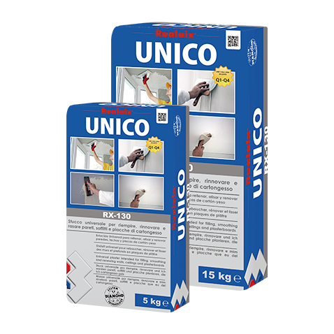 Stucco in polvere UNIVESALE, con certificazione Q1-Q4. Ideale per tutte le fasi di stuccatura e rasatura del cartongesso, riempire, rinnovare e rasare pareti e soffitti interni con finitura liscia e facile da carteggiare. Possibile raggiungere elevati spessori con ritiro minimo.