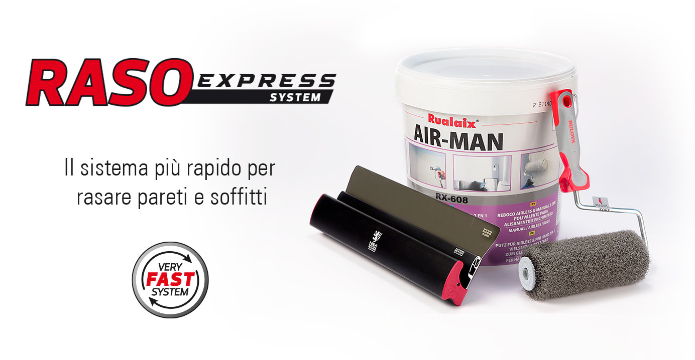 Stucco in pasta pronto all’uso, applicabile con rullo (sistema Raso Express System), spatole o airless, con una finitura di straordinaria finezza.