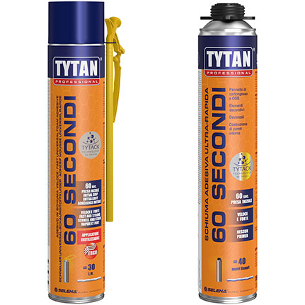 Tytan Professional SCHIUMA 60 SECONDI è un adesivo in schiuma professionale universale ultra-rapido, polivalente che può essere utilizzato su gran parte dei materiali da costruzione. Grazie al suo potere adesivo il prodotto è idoneo sia per fissaggi leggeri che pesanti. Non fa spessore. Disponibile sia in versione manuale che pistola.