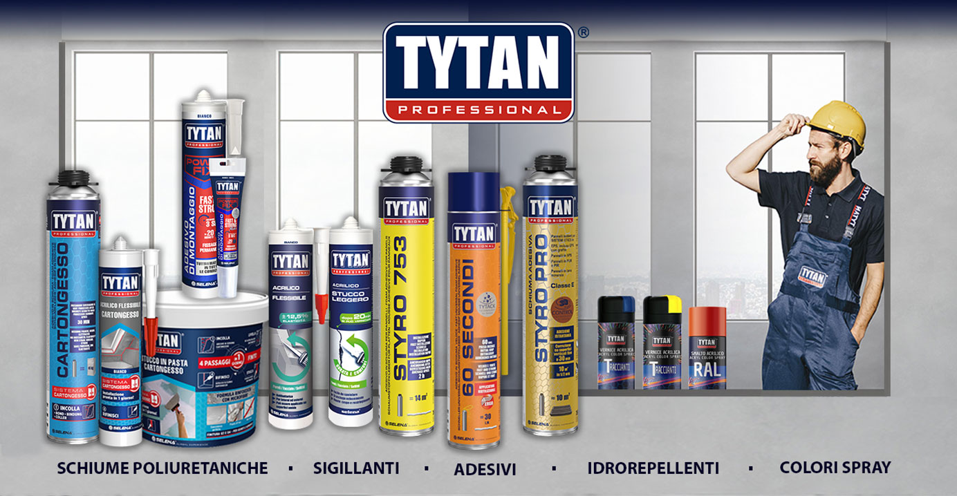 Il brand Tytan Professional offre un’ampia gamma di prodotti specifici per il mondo dell’edilizia e del fai-da-te. Il portfolio è ricco di soluzioni studiate per ottimizzare il tempo dell’utilizzatore e per garantirne un’eccellente risultato. Schiume poliuretaniche, sigillanti, adesivi, impermeabilizzanti, sistemi di isolamento, vernici spray e molto altro ancora. Il marchio Tytan appartiene al Gruppo Selena: con più di 17 stabilimenti produttivi in tutto il mondo è uno dei leader nella distribuzione globale di prodotti chimici per l’edilizia ed uno dei quattro maggiori produttori al mondo di schiume poliuretaniche per l’industria edile. La creatività e il know-how tecnologico del reparto R&D sono gli elementi chiave per lo sviluppo del successo dell’azienda. I ricercatori studiano sempre nuove e rivoluzionarie soluzioni, commercializzate per permettere all’utente finale di utilizzare prodotti all’avanguardia ed eseguire così un lavoro preciso e professionale.