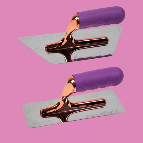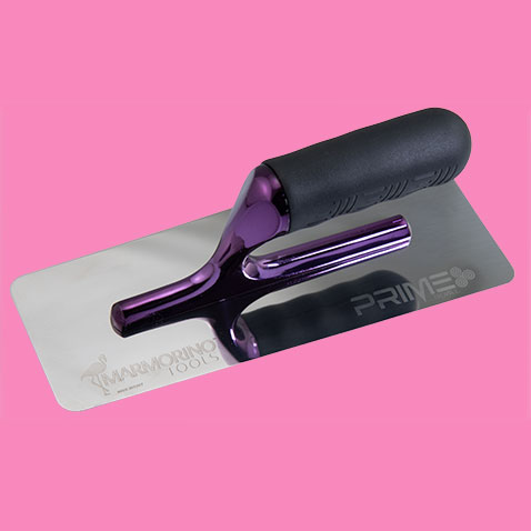Crediamo fortemente nell’innovazione. La ricerca di nuovi materiali e nuove tecniche ha portato alla creazione di PRIME TROWEL, la risposta alle richieste sempre più esigenti dei decoratori. Con questa lama in acciaio speciale ogni problema di stesura di decorativi critici, come resine epossidiche o quarzi soprattutto a base chiara è risolto, eliminando totalmente il problema di striature nere indesiderate. L’usura minima della lama permette di applicare su grandi superfici senza sforzo. Questo frattone è unico anche nell’aspetto estetico, con la forcella viola imperiale e il manico ergonomico in gomma nera che lo rendono inconfondibile.