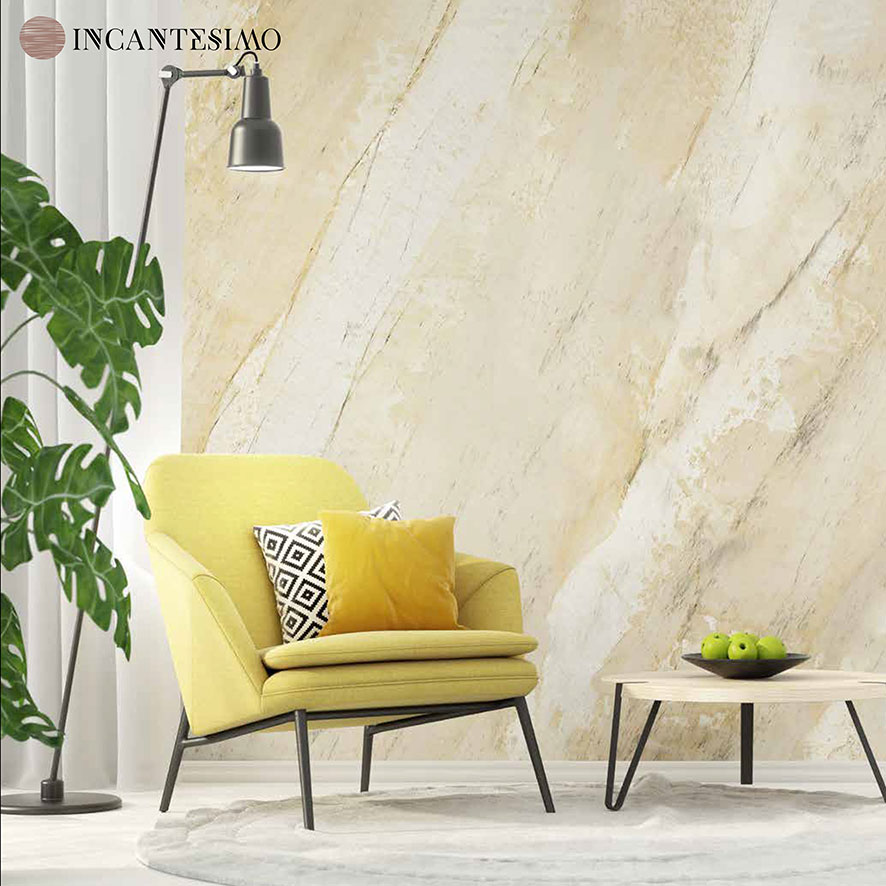Effetto marmo in una mano sola. Incantesimo è uno stucco innovativo, basato su una tecnologia brevettata, che permette di ottenere molte sfumature e venature di colore diverso in una sola mano di prodotto.